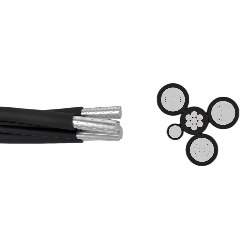 This cable consists of five conductors twisted together. There are three phase conductors, one neutral messenger conductor, and one additional conductor for public lighting. The phase and lighting conductors are made of stranded aluminum. The neutral conductor is made from a strong aluminum alloy that supports the cable’s weight. All conductors are insulated with black XLPE (cross-linked polyethylene). This material is resistant to weather and UV sunlight, ensuring safety and reliability. The insulated design of Gongniu Cable’s ABC products helps prevent power outages caused by trees or accidental contact.
