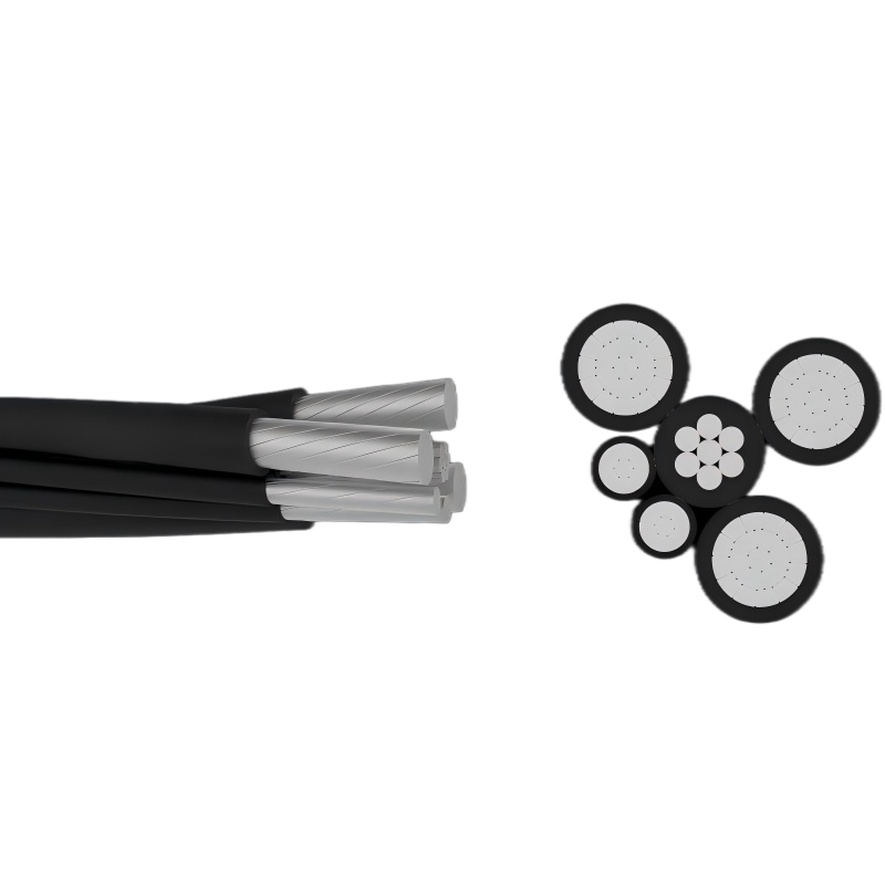 This cable is a bundle of six conductors twisted together. It includes three phase conductors, one neutral messenger conductor, and two additional auxiliary conductors. The phase and auxiliary conductors are made of stranded aluminum. The neutral conductor is made from a high-strength aluminum alloy, which supports the entire cable. Each conductor is covered with black, UV-resistant XLPE (cross-linked polyethylene) insulation. This insulation provides excellent protection against weather and makes the cable safe to touch accidentally. The Gongniu Cable design ensures a long service life and easy installation.